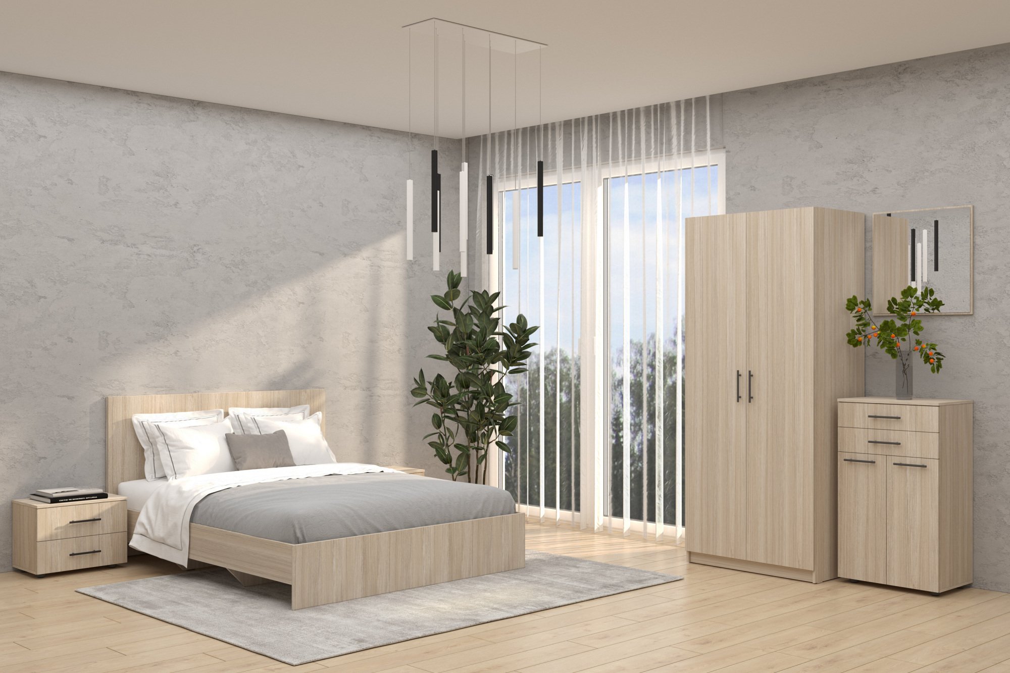 Переваги спальні Luna/Луна №2Спальня Luna від виробника Matroluxe – це меблі, об’єднані однією ідеєю: створити неповторне почуття затишку та спокою. Чотири вироби, що нададуть будь-якому інтер’єру характеру та особливого шарму. Дизайн представлених шафи, тумби, комоду та ліжка є стриманим та зосереджений на утворенні справжнього прихистку від щоденних турбот. Адже в кожному виробі втілені головні цінності – абсолютний комфорт та перевірена якість. У комплект входить: ліжко 2000х1400, тумба для взуття, шафа 2-х дверна, тумба приліжкова і дзеркало.Довгий термін експлуатації меблів.Збереження ергономічності простору.Стильні кольори виробів.Якісні та витривалі матеріали.Використані матеріали в спальні Luna/Луна Провідні спеціалісти фабрики Матролюкс доклали багато зусиль, аби створити спальню, що без жодних сумнівів стане місцем спокою та відновлення. Кожна модель з колекції Luna є максимально практичною у використанні, а завдяки складовим також відрізняється високим показником надійності та довговічності. Адже використана деревина є міцною та легко піддається механічним обробкам. Усі вироби з колекції Луна складаються з:Надійного ДСП з можливістю вибору кольору: Антрацит і Дуб Урбан Ойстер. Цей матеріал з легкістю витримує негативний вплив вологості, ультрафіолетового випромінювання та коливань температури. Крійка протиударна 0.5 мм.Переваги покупки спальні Luna/Луна виробника MatroLuxeКупити будь-який елемент з колекції Луна просто й зручному в інтернет-магазині Matroluxe завдяки нашим консультантам, що безпомилково допоможуть обрати потрібні меблі. Ще комфортнішим придбання роблять наступні переваги:Вигідне співвідношення ціни та якості для наших клієнтів.Доставка в кожен куток України.Гарантія від офіційного виробника.Широкий асортимент товарів.Надійність виробів, яку щоразу підтверджують покупці.Залишайте відгуки на сайті та діліть своїми враженнями від користування виробами з іншими споживачами!
