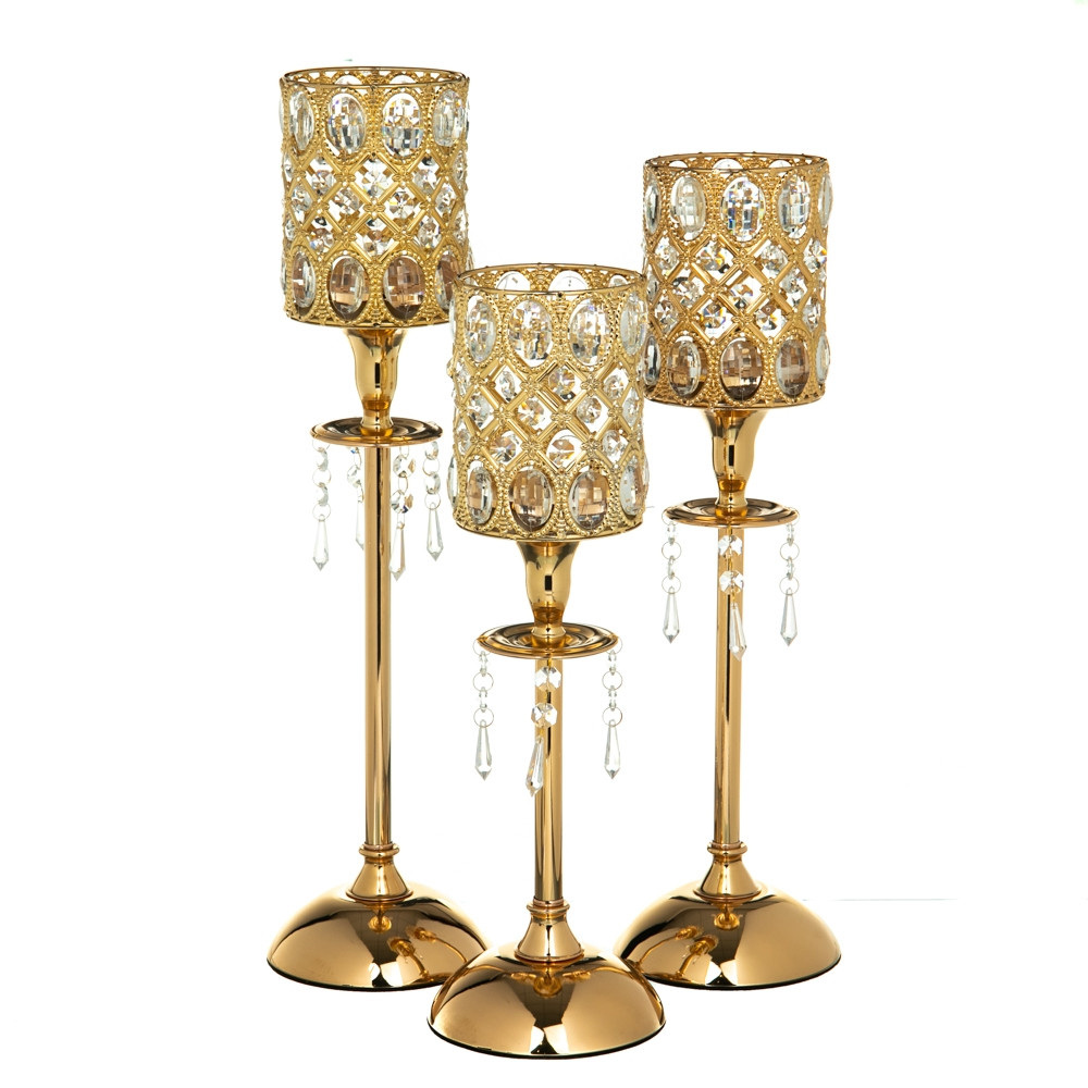 Набор подсвечников представляет собой три подсвечника из металла золотого цвета, который прекрасно дополнит ваш праздничный стол или комнатный декор.