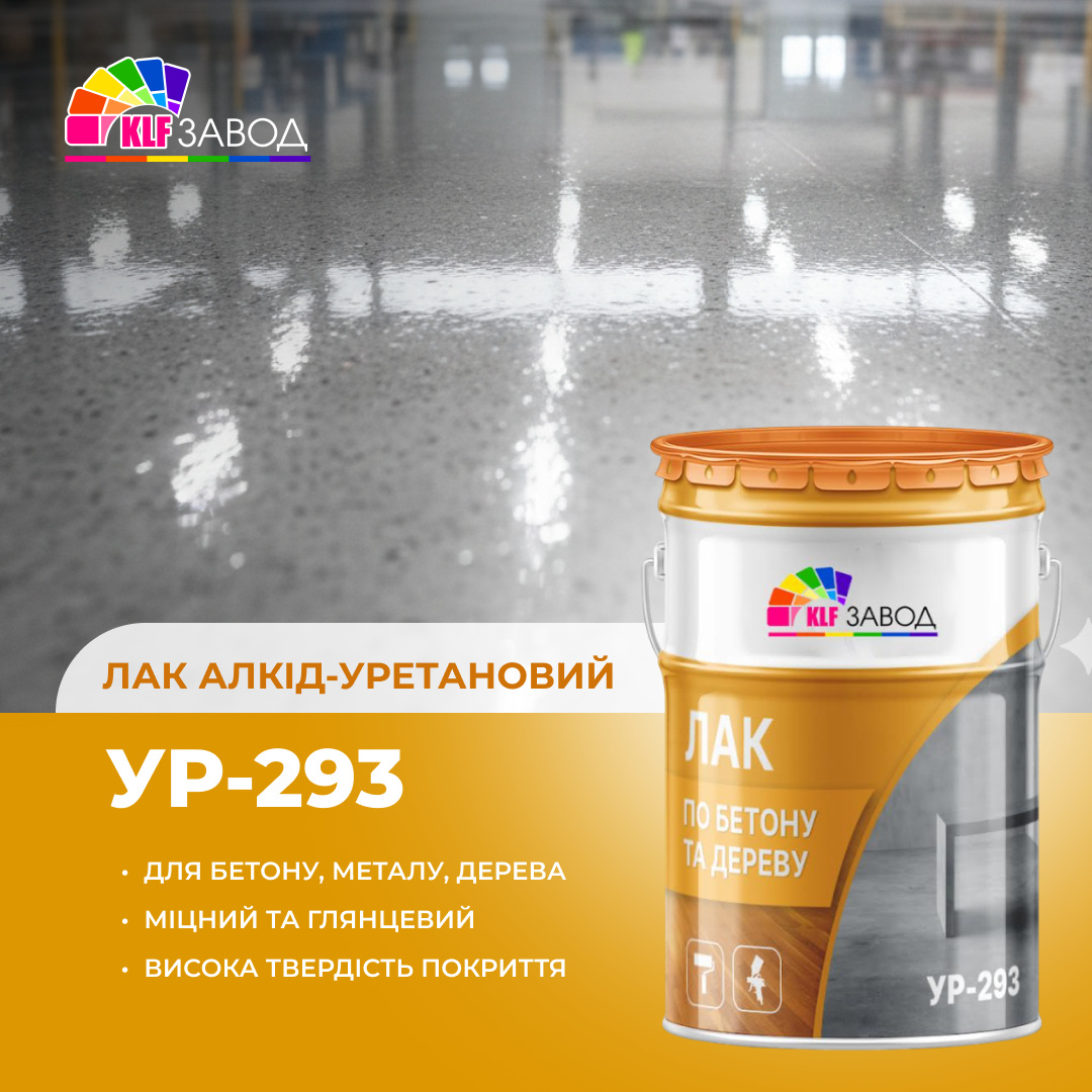 Лак УР-293 используют для обработки деревянных и бетонных поверхностей. Защищает от внешнего воздействия, влаги. Используется только внутри помещения. Применим для помещений жилого, общественного и промышленного назначения. Состав может использоваться для гидроизоляции бетона. Наносится в 2-4 слоя, каждый новый слой выполняется после полного высыхания предыдущего. Затвердевание покрытия происходит под воздействием влаги в воздухе. Высыхание длится 36 часов, полное затвердевание покрытия — 7 суток. Особенности полиуретанового лака УР-293 Бесцветный цвет, при застывании лак образует глянцевую поверхность. Высокие показатели твердости и абразивоустойчивости покрытия. Стойкость к растворам щелочи, слабых кислот, растворителей, масел, бензина. Лак поставляется в металлической таре по 18 и 45 кг. «Киевский лакокрасочный завод» является производителем. Изготовление из европейского сырья на собственных производственных мощностях, оборудованных новым современным оборудованием. Технические показатели: Теоретический расход 6-8 м²/л на каждый слой покрытия Сухой остаток Прим. 61±3% Плотность Прим. 1,03±0,03 кг/л Разбавитель, очистка инструментов Ксилол, сольвент Способ нанесения Кистью, валиком или распылителем в 2-4 слоя с учетом грунтовочного Время высыхания Не более чем через 36 часов (время зависит от температуры, толщины слоя и влажности воздуха). Максимальная твердость покрытия – через 7 суток Степень блеска Глянцевая Цвет Бесцветный Условия хранения В плотно закрытой таре производителя, предохраняя от воздействия влаги