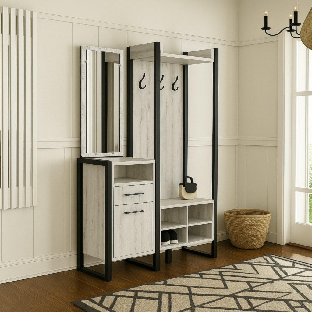Прихожая в коридор Tobi Sho Остин ПЛ/1 в стиле Лофт с зеркалом, 1780x350x1900 мм Дуб крафт белый