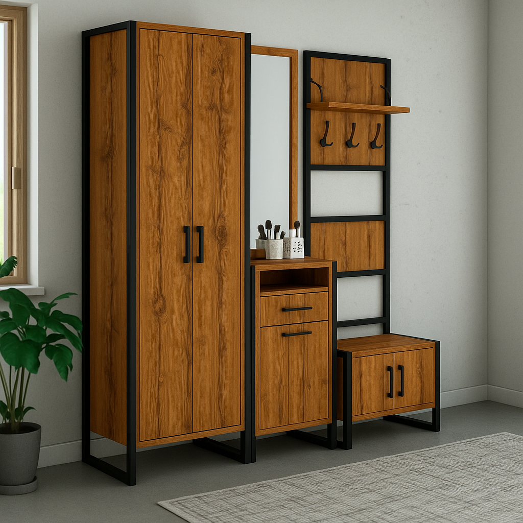 Прихожая в коридор Tobi Sho Остин ПЛ/1 в стиле Лофт с зеркалом, 1780x350x1900 мм Файервуд