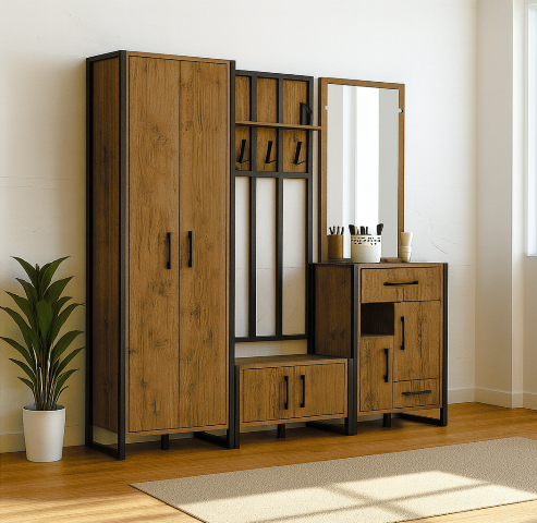 Прихожая в коридор Tobi Sho Остин ПЛ/1 в стиле Лофт с зеркалом, 1780x350x1900 мм Файервуд