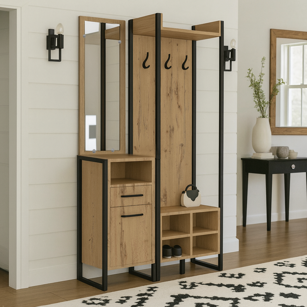 Прихожая в коридор Tobi Sho Бракстон ПЛ/6 в стиле Лофт с зеркалом, 1320x350x1900 мм Хортица