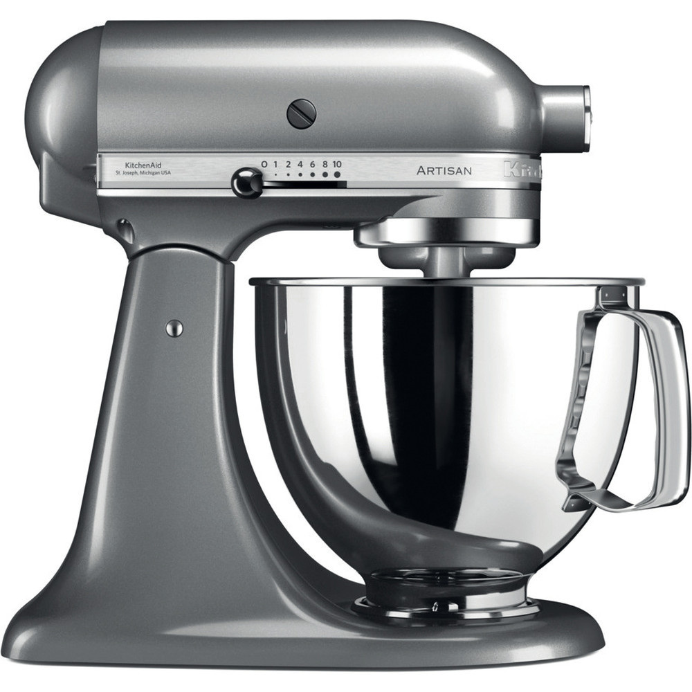 Міксер планетарний KitchenAid 5KSM125ECU 300 Вт 4,8 л сріблястий Планетарний міксер із чашею — класичне рішення для суворої кухні або приміщення, зробленого в хай-тек стилі. Багатофункціональна побутова техніка від легендарного американського бренда стане перлиною вашої колекції та центром кулінарних експериментів. Довіряйте такі складні процеси, як подрібнення та перемішування інгредієнтів, розкачування ідеального тіста для італійської кухні та нарізання бездоганними кубиками професійної техніки! А свій час витрачайте на винахід нових шедеврів. Технічна досконалість — основа всього Настільний міксер працює на потужності 300 Вт, а в його моторі укладена сила 1,3 коней. Лита конструкція з металу гарантує неперевершену стійкість і поглинання зайвих вібрацій і шуму. Все це доповнено найзручнішою чашею з неіржавкої сталі з ергономічною ручкою — на 4,8 л. Великий об'єм дає змогу приготувати багато продуктів за один раз. Ці технічні характеристики доповнені іншими приємними бонусами: закріплення чаші — після встановлення на платформу ємність для перемішування компонентів підіймається і фіксується важелем; великий важіль для регуляції швидкостей — усього в комбайні передбачено 10 режимів роботи зі ступеневою регуляцією; нескінченна кількість функцій — спереду розміщене гніздо для кріплення насадок, які перетворюють стаціонарний міксер Кітчен Ейд на багатофункціональний процесор. Планетарна система перемішує інгредієнти якісніше, ніж інші агрегати. Завдяки зворотному обертанню лопаток і віночка охоплюють до 99% площі чаші, забезпечуючи ідеальне розтирання, збивання та перемішування. Стандартна комплектація та її можливості Базова конфігурація планетарного міксера дає змогу готувати сотні страв: Дротяний віночок із конусоподібними лопатями — миттєво збиває білки, вершки та інші компоненти, перетворюючи їх на соуси, муси та креми.; Лопатка з гнучким ребром — замішує тісто для кексів, глазур і робить пюре з печених продуктів; Захисний обід — запобігає розбризкуванню навіть на великих швидкостях, а додатковий отвір дає змогу завантажувати порції продуктів у процесі роботи. Всі насадки виготовлені з неіржавкого металу та покриті безпечними силіконовими захистом, які перешкоджають окисненню продуктів. Елементи кухонного комбайна можна мити в посудомийній машині. Легендарний американський процесор Кітчен Ейд зберіг чудовий дизайн і функціональність. Цей прилад замінить на кухні до 90% іншої техніки — потрібно лише згодом доповнювати його різними насадками. Чудова продуктивність. Прямий привод. Приготування як малих, так і великих порцій. Ефективне передавання потужності від двигуна до насадок. Універсальне застосування і зручне використання. Єдиний багатоцільовий привод для роботи з додатковими насадками. Міксер KitchenAid — це мрія кожного кухаря. Він незамінний помічник на кухні, зайва пара рук, що допомагає зайнятим господиням створювати чудові делікатеси «з нуля». Ось уже 90 років цей легендарний міксер полегшує життя професійних кухарів і аматорів, перетворюючи трудомісткі кухонні операції на легку роботу. Міксер KitchenAid Artisan KSM125Е (виробництво США) призначений для змішування, збивання, замішування тіста для приготування дивовижних кексів і чудового хліба. Водночас його надійні насадки дають змогу робити на кухні все: різ