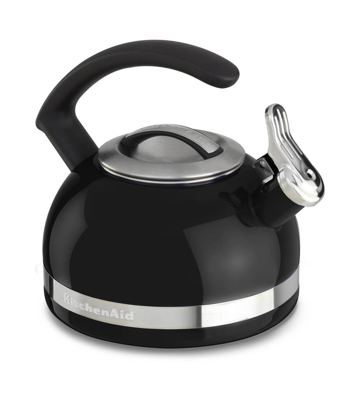 KitchenAid KTEN20CBOB 2.0-Quart Kettle with C Handle and Trim Band - Onyx Black Компания KitchenAid с удовольствием напомнила покупателям о замечательной и любимой многими традиции готовить чай с помощью наплитного чайника. Стильный чайник kitchenaid – новинка на вашей кухне. Особенности модели Чайник наплитный объемом 1,9 литра со свистком выполнен в фирменной гамме цветов компании KitchenAid. Его корпус – это комбинация нержавеющей стали, украшенной пластинами благородного цвета. Чайник со свистком подойдет для кипячения воды на любых варочных поверхностях, в том числе на конфорках индукционных плит. Преимущества модели Чайник обладает неоспоримыми преимуществами: • Покрыт блестящей эмалью, которая устойчива к царапинам и сколам. • Крышка чайника снимается – его удобно мыть внутри и просто наполнять. • Яркий дизайн чайника украсит любую кухню. • Полоса с логотипом компании KitchenAid по окружности чайника подчеркивает статус владельца. • Свисток отлично слышен и не позволит забыть о чайнике на плите. • Удобная ручка прибора выполнена из нержавейки и покрыта нескользящими накладками, которые к тому же не нагреваются. • Специальный рычажок открывает крышку носика – так воду наливать удобнее. Чайник KitchenAid 1,9 л подходит для всех варочных поверхностей. Сделан из нержавеющей стали, с глянцевой эмалированной внешней поверхностью и удобной литой прорезиненной ручкой, которая не нагревается. Носик чайника легко открывается одним нажатием. Чайник покрыт блестящей цветной эмалью, устойчивой к сколам и царапинам, и будет прекрасно смотреться на любой кухне. С его помощью вы сможете вскипятить воду для обычного или травяного чая, кофе-пуровер, каш, не требующих варки и т.д. Благодаря съемной крышке чайник легко наполнять и удобно мыть. Чайник яркой расцветки станет настоящим украшением любой кухни. Блестящая полоса по окружности с логотипом KitchenAid оживляет дизайн чайника. Громкий свисток хорошо слышен и всегда предупредит вас о том, что чайник вскипел. Ручка из полированной нержавеющей стали имеет удобную форму и покрыта нескользящими, ненагревающимися накладками. Крышка носика со свистком легко приподнимается с помощью небольшого рычажка, чтобы было удобнее наливать воду. Подходит для индукционных плит. Материал: нержавеющая сталь Материал ручки: нержавеющая сталь Объем: 1,9 л Внутреннее покрытие: эмаль Подходит для индукционных плит Производитель: KitchenAid, США