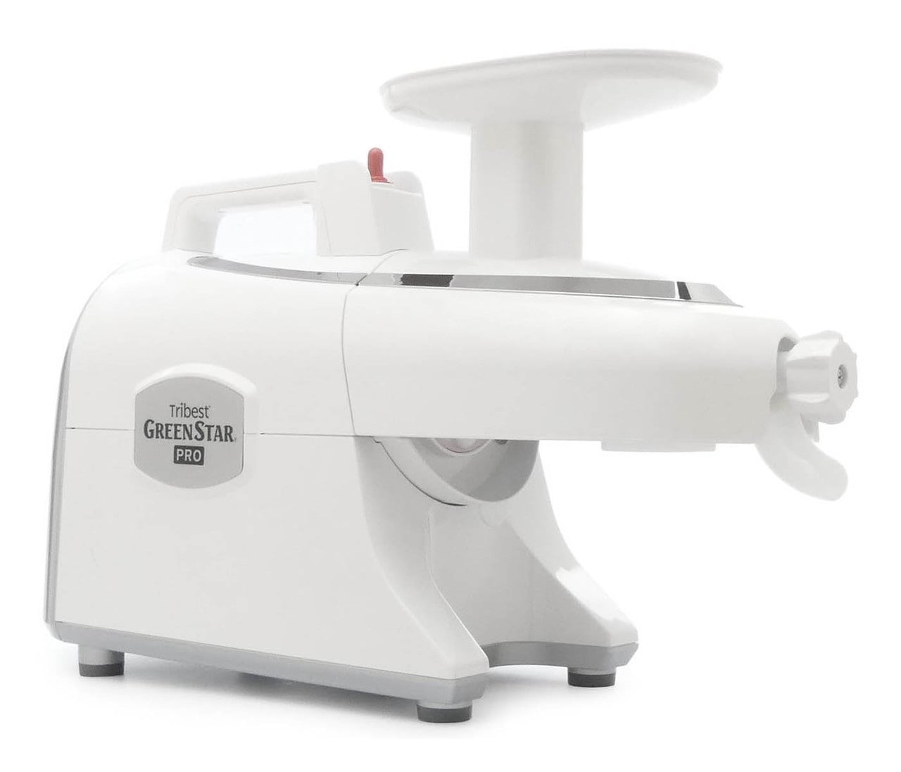 Двошнекова соковичавниця Green Star Pro GS-P502 Опис комерційної соковичавниці Green Star Pro GS-P502 Новинка від конструкторів компанії Tribest — елітна комерційна соковичавниця Green Star Pro GS-P502 4-го покоління з інноваційною технологією 2-х горизонтально розташованих шнеків, виготовлених повністю з неіржавкої сталі. Які оновлення отримала нова модель двосекової соковичавниці? • 2 шнеки повністю виготовлені з неіржавкої сталі. • Посилений кошик для віджимання. • Покращене охолодження двигуна. • Оптимізоване зберігання штовхача. Тепер у корпусі є спеціальний відділ. • Сучасний стиль виготовлення приладу Hi-Tech і практичний колір корпусу. • Соковичавниця Green Star Pro сертифікована для використання з комерційною метою. (бари, ресторани). Нові ідеї не оминулися стороною корпус і всю конструкцію загалом. Соковичавниця тепер легше розбирається й миється. Соковичавниця Green Star Pro GS-P502 готова до великих навантажень і тривалої роботи. Вона допоможе швидко приготувати хлібні палички, горіхову пасту, дитяче харчування, різні паштети, сорбети та інші рецепти. З Greenstar Elite можна віджимати молочко з пророщеного насіння, бобових (гороху, сої, нуту, сочевиці та ін.), злакових культур для приготування найкористіших протеїнових коктейлів. Особливості GS-P502: що робить її надійною й унікальною? Компанія Tribest постаралася та створила прилад, який стане незамінним для бізнесу або допоможе простим домогосподаркам легко та просто готувати для великої або маленької сім'ї. Функціонал нової соковичавниці покращений, як і продуктивність. Серед основних перевагних і особливостей моделі варто виділити такі: • Потужні сталеві шнеки особливої форми. Харчовий сплав неіржавкої сталі нейтральний із будь-якими харчовими продуктами та зберігає всі смакові та корисні властивості напоїв, паст і соків. • Система Jumbo Twin Gears — більше якісного соку, отриманого з використанням магнітної та біокерамічної технології. Процес приготування вирізняється трьома етапами оброблення продуктів — подрібнення, змішування та віджимання. • Високий ККД — 70-90%. Навіть у разі віджимання соку з коренеплодів продуктивність дуже висока. За 30 хв безперервної роботи соковичавниця видає до 15 л свіжого та смачного фрешу. З огляду на проведених тестів, прилад може працювати цілу 1 годину безперервно. • Універсальність. Завдяки спеціальному пристрою шнеків і подрібненню ними на початку процесу приготування соків, прилад із легкістю справляється з різними твердими плодами, фруктами, овочами та не тільки... • Надійність механізму. Інноваційні технології дали змогу неабияк знизити знос силіконових ущільнювачів і пластикових втулок. • Новий механізм блокування. Стаціонарна система фіксації деталей соковичавниці зі зручними засувками забезпечують легкість збирання та розбирання приладу. • Просте керування. Віджимати соки так просто, що цілком впорається підліток. Процес віджимання соків з Green Star Pro принесе Вам величезне задоволення! • Ергономічна, стійка конструкція. Апарат стійко стоїть на 4 ніжках і не нахиляється під час роботи. Для транспортування є зручна ручка. • Система безпеки. «Грін Стар Еліт» запобігає травмам, виключивши всі шанси на взаємодію з рухомими частинами. Система безпеки взаємодіє із захисною кришкою, яка вимкне соковичавницю під час зняття її. • Легке очищення. У конструкції зменшена кількі