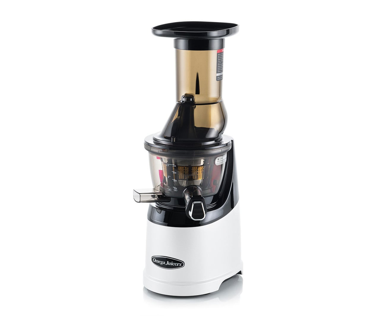 Omega Juicer MMV-702W White шнековая соковыжималка Omega Juicer MMV-702 MegaMouth – одна из лучших шнековых соковыжималок с вертикальной загрузкой. Она может измельчить целые плоды без их нарезки. Работает мощно, но тихо. Соковыжималка дает прекрасный выход сока, сохраняя в нем максимум витаминов и ферментов. Умеет дробить лед, орехи и семена. Другими достоинствами модели являются ее надежность и способность готовить сок очень быстро. Шнековая соковыжималка Omega Juicer MMV-702 MegaMouth делает процесс получения сока на низких скоростях более быстрым. В этой модели традиционное качество Omega сочетается с рядом инновационных функций. Соковыжималка с вертикальной подачей продуктов поможет получить сок просто, быстро и удобно. Горловина подачи продуктов Omega 702 имеет диметр 76 мм – самый большой среди соковыжималок такого класса. В неё легко проходят среднего размера яблоки и апельсины без предварительного измельчения. Покупатель существенно сэкономит время на нарезку и подготовку продуктов. Работа соковыжималки обеспечивается 240-ваттным двигателем переменного тока. Его мощности хватает для того, чтобы соковыжималка без усилия измельчала крупно нарезанные или вообще не нарезанные продукты. Благодаря мощному двигателю и инновационной формы шнека, измельчение происходит быстрее, чем в других соковыжималках. При этом соковыжималка работает невероятно тихо. Порцию сока можно сделать даже поздней ночью или ранним утром, не боясь потревожить отдыхающих родственников и соседей. Модель Omega MMV-702 бережно относится к фруктам и овощам. В соке сохраняется максимум витаминов и ферментов. Устройство прекрасно гомогенизирует (измельчает и перемешивает) продукты. С его помощью можно получить не только однородный сок, но и ореховую пасту, сделать сорбеты и детское пюре. Соковыжималка легко очищается в процессе работы. Интегрированный набор ножей постоянно очищает отжимающее устройство от остатков жмыха, не позволяя ему забиваться. Специальнаый клапан на передней части соковыжималки защищает столешницу от капель сока. Соковыжималка хорошо себя проявляет при работе с разными видами продуктов. Оно справляется с приготовлением вкусных и здоровых соков, сорбетов, орехового молока, измельчением семян и орехов до состояния пасты. В целом порция сока в соковыжималке MMV-702 готовится на 30% быстрее, чем в аналогих моделях. Это становится возможным благодаря мощному двигателю, эффективному шнеку и отсутствию необходимости нарезать овощи перед их использованием. В подающую горловину помещаются мелкие и средние яблоки и апельсины, а крупные плоды придется все же нарезать. Тесты показали, что из 1 кг очищенной моркови средней сочности получается около 490 мл сока. Лишь одна соковыжималка дает больше – модель Sana EUJ-808 (520 мл). Очистка устройства не требует много времени и сил. Сочетая традиционное качество Omega с несколькими инновационными особенностями, соковыжималка Omega MMV-702 MegaMouth – это самая быстрая и удобная соковыжималка холодного отжыма, которую мы тестировали. Широкое горло и двигатель Горловина подачи продуктов составляет в диаметре 76 мм и является самой большой среди шнековых соковыжималок в своем классе. Она может легко перерабатывать целые апельсины и яблоки. Широкая горловина – означает меньше времени, затрачиваемого на резку фруктов и овощей. Двигатель переменного тока 