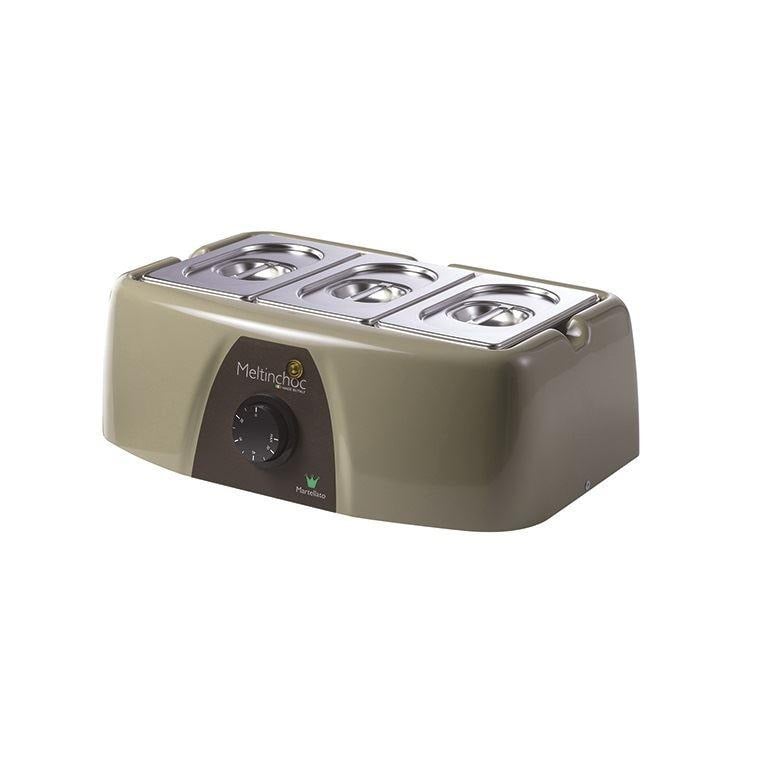 Короткий опис Розтоплювач шоколаду Martellato MC107 (0,8 л x 3) - компактний та функціональний прилад з трьома окремими секціями по 0,8 літра. Призначений для темперування невеликих об'ємів різних видів шоколаду. Ідеальний вибір для домашніх кондитерів та невеликих кав'ярень, які пропонують різноманітні десерти з шоколадом. Кожна секція має власний термостат для точного контролю температури, що дозволяє одночасно розтоплювати білий, молочний та темний шоколад, не змішуючи їх. Оплата Оплата онлайн Післяплата Оплата кур'єру Безготівкова оплата Оплата частинками (Приватбанк, Монобанк) Доставка Адресна доставка кур'єром Доставка у відділення нової пошти