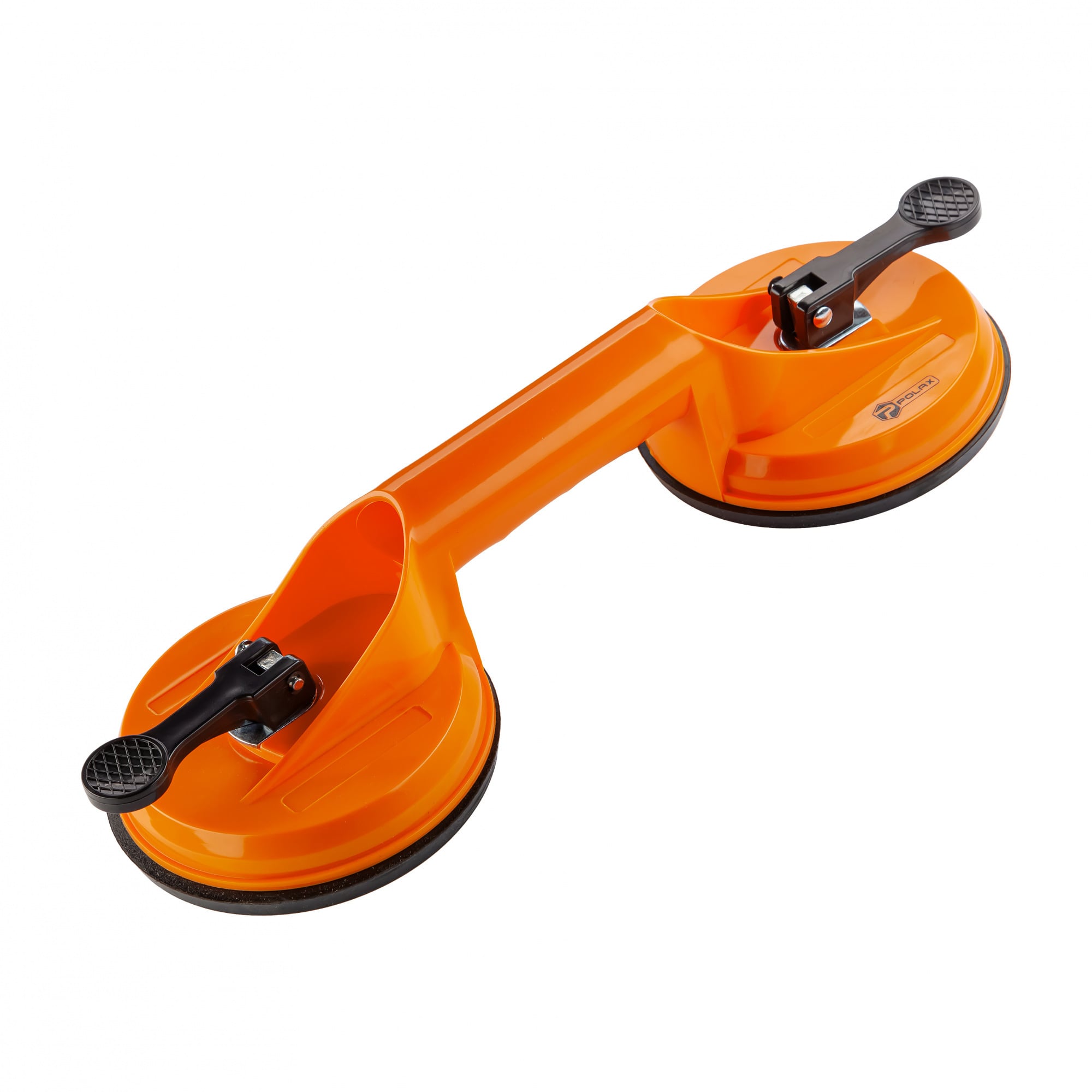 Держатель-присоска для стекла и плитки двойная ⌀2×115 мм, max 70 кг – это надежный инструмент для подъема, переноски и фиксации гладких и ровных поверхностей, таких как стекло, керамическая плитка, зеркала, металл или пластик. Две мощные присоски диаметром 115 мм каждая создают сильную вакуумную сцепку, позволяющую удерживать грузы весом до 70 кг. Корпус изготовлен из ударопрочного пластика, а ручка имеет удобную форму для комфортного увлечения. Механизм фиксации оснащен легко блокируемыми одним движением рычагами.