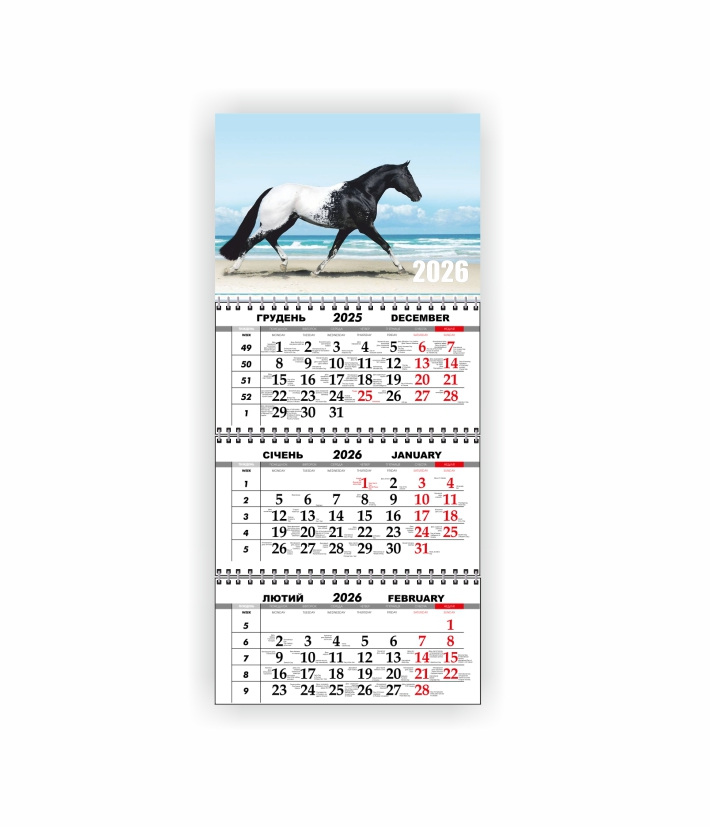 Квартальный настенный календарь Vivay 2026 Год лошади 30x65 см Разноцветный (hub_0l0wm5)