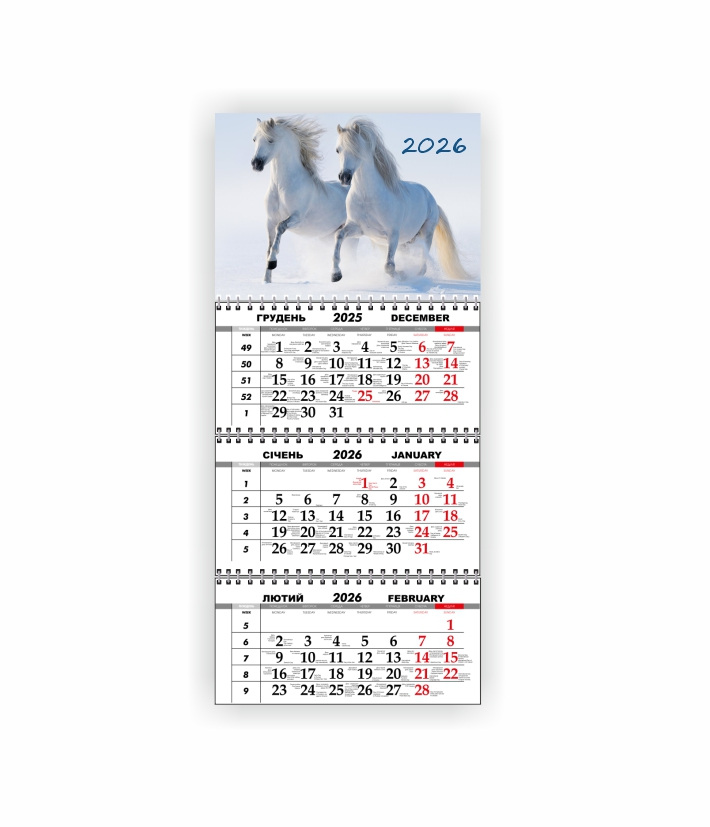 Квартальный настенный календарь Vivay 2026 Год лошади 30x65 см Разноцветный (hub_y8wh8k)