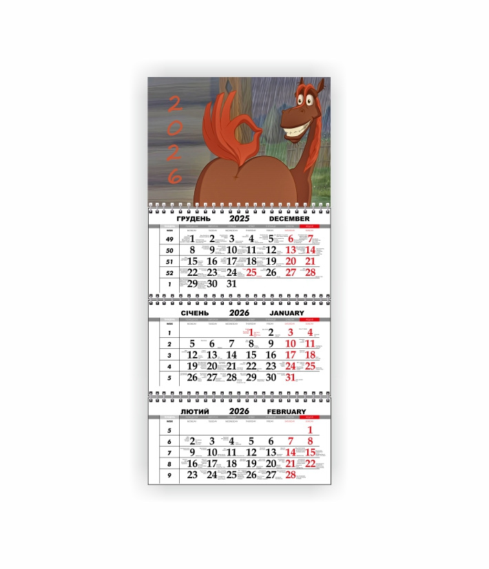 Квартальный настенный календарь Vivay 2026 Год лошади 30x65 см Разноцветный (hub_0l0wm5)