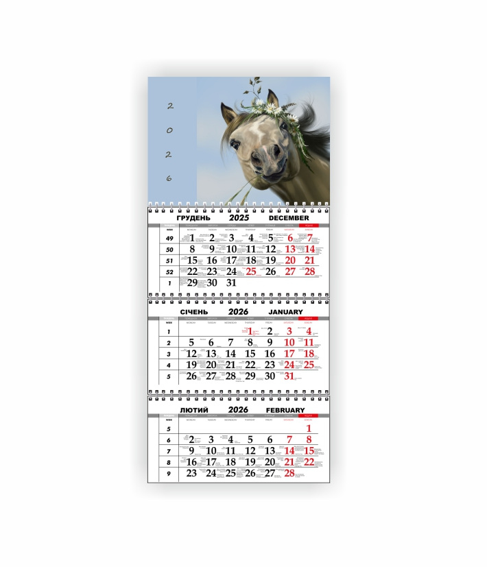 Квартальный настенный календарь Vivay 2026 Год лошади 30x65 см Разноцветный (hub_0l0wm5)