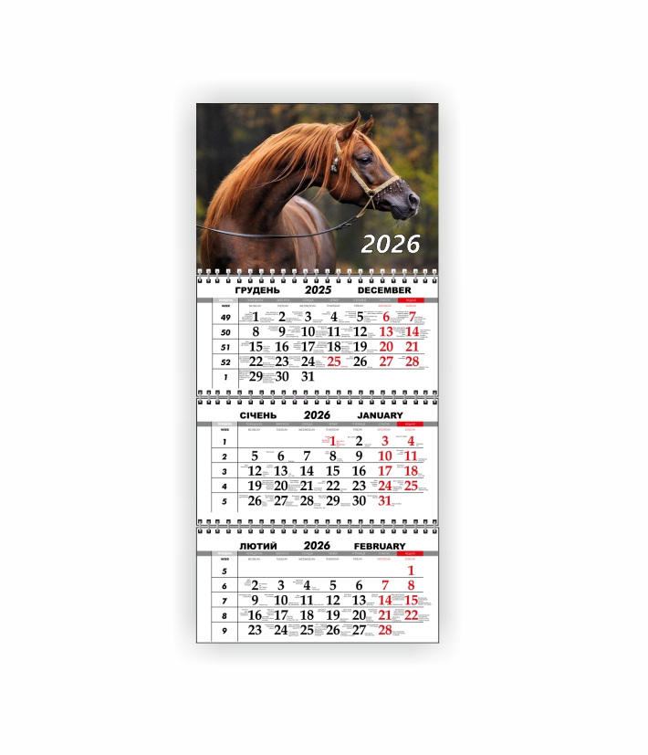 Квартальный настенный календарь Vivay 2026 Год лошади 30x65 см Разноцветный (hub_0l0wm5)