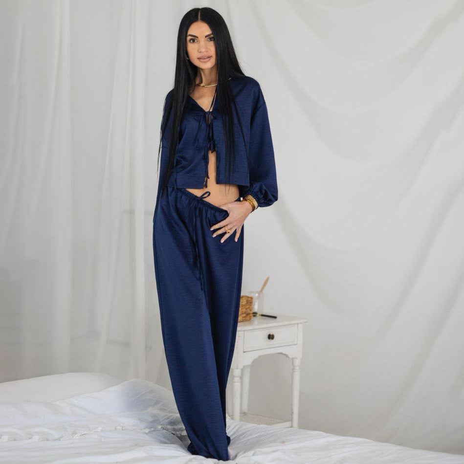 Женский домашний костюм FREYA – изысканный стиль и абсолютный комфорт! FREYA – это идеальное сочетание женственности, комфорта и элегантности в домашнем костюме. Изготовлен из легкого и приятного на ощупь материала – шелковой вискозы, дающей мягкость, нежность и свободный струящийся силуэт. Комплектация домашней одежды FREYA: Свободные брюки – удобно сидят на талии благодаря мягкой резинке, даря максимальный комфорт в движении. Стильный верх на завязках – элегантные завязки придают шарму, позволяя регулировать посадку и создавать разные образы. Преимущества женского костюма FREYA: Качественный материал – шелковая вискоза обеспечивает лёгкость, мягкость и дышащие свойства. Нежный к коже – приятный тактильно, не вызывает раздражения. Легкий, невесомый силуэт – идеально подходит для теплых дней и домашнего уюта. Практичность в уходе – не мнется, легко стирается, долго сохраняет насыщенность цвета. Женский дизайн – изящные завязки придают элегантность и позволяют изменять стиль ношения. Многофункциональность подходит как домашний костюм, легкий летний образ или стильный комплект для отдыха. Свобода движения – свободный крой обеспечивает комфорт и легкость в любых ситуациях. Идеальный выбор для: Домашнего комфорта – легкий и удобный для повседневной носки. Летние прогулки – выглядит эффектно не только дома, но и за его пределами. Романтических вечеров – подчеркивает утонченность и женственность. Подарки для женщины – роскошный вариант для тех, кто ценит качество и стиль. Уход за костюмом FREYA: Деликатная стирка при 30°C. Использовать мягкие моющие средства. Избегайте сильного отжима и высоких температур.
