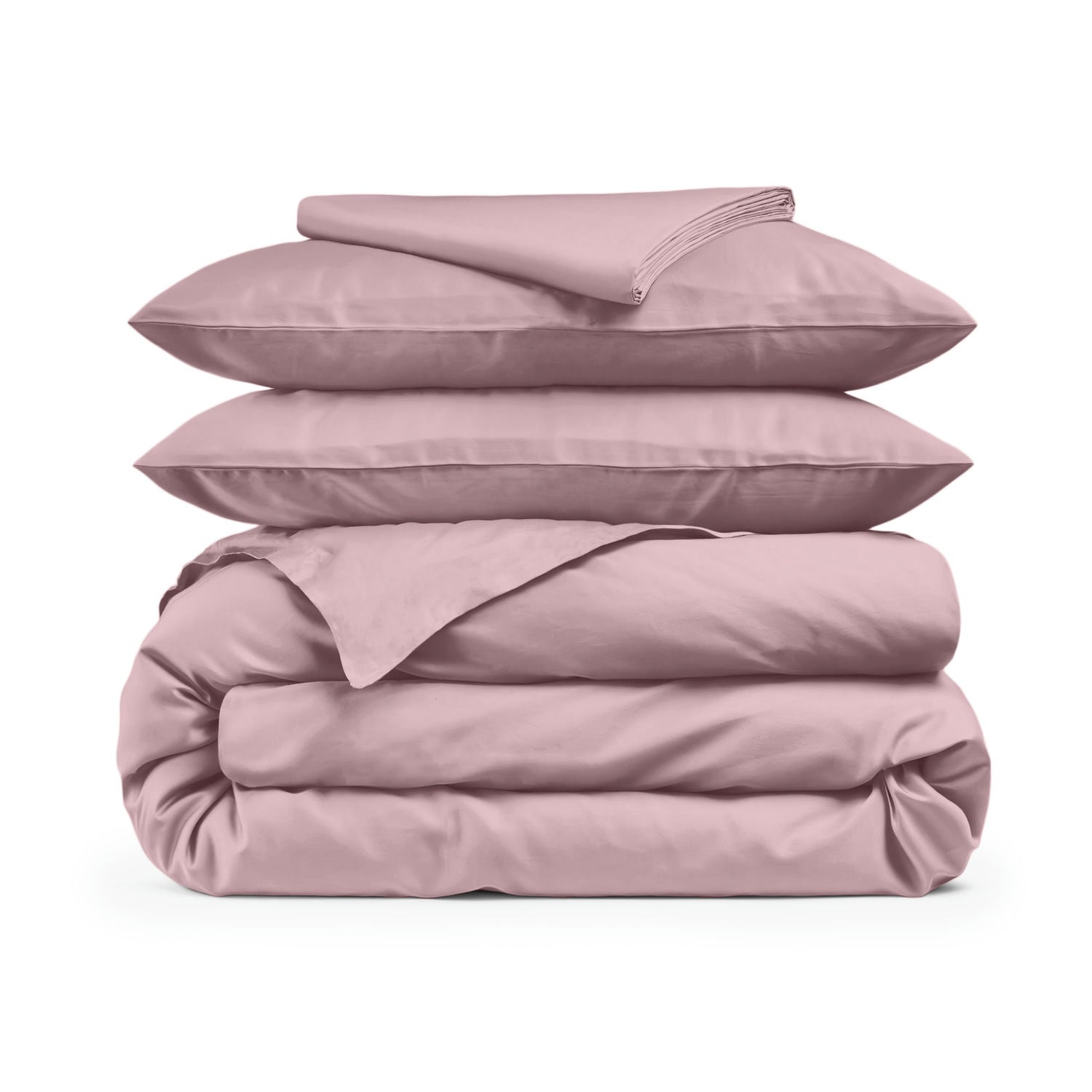 Евро постель сатин с простыней на резинке SAKURA Cosas лиловый 200х220 см