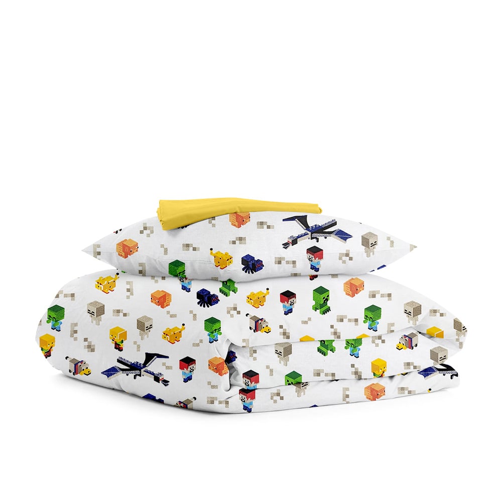 Описание Подростковая постель с простыней на резинке Minecraft CS8 COSAS Зеленый 160х220 см
