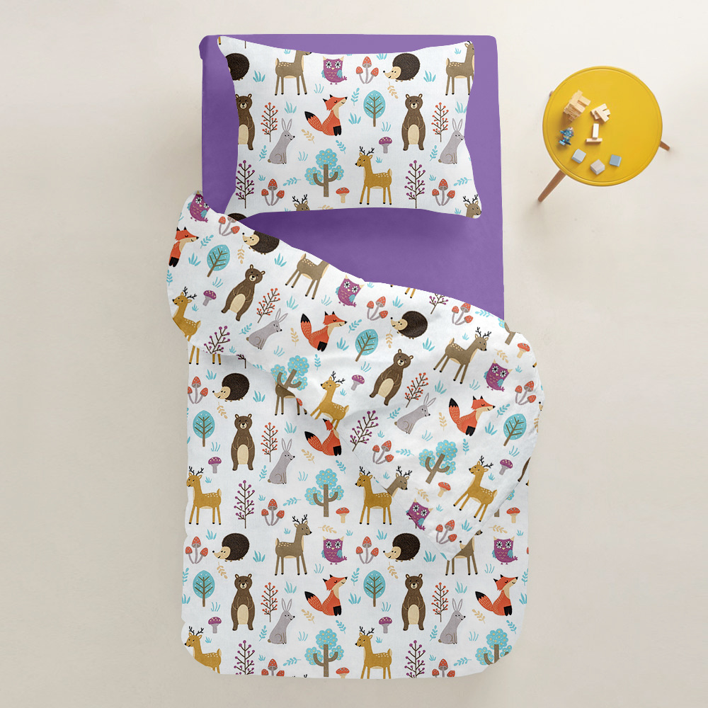 Описание Подростковая постель с простыней на резинке Colorful Animals CS8 COSAS Бежевый 160х220 см
