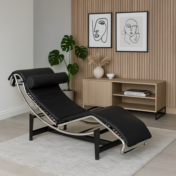 Шезлонг-кушетка Лекор м'який чорний на металокаркасі