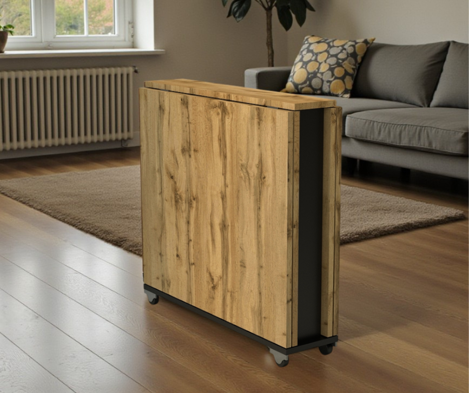 Раскладной стол-книжка «Диалог» на колесах — универсальное решение для дома и небольших пространств. Это практичный и чрезвычайно функциональный вариант для кухни, гостиной, офиса или студии. Благодаря роликовой системе и металлическим опорам он легко перемещается и быстро трансформируется в нужный формат: от компактного столика до большого обеденного пространства на 10-12 человек.