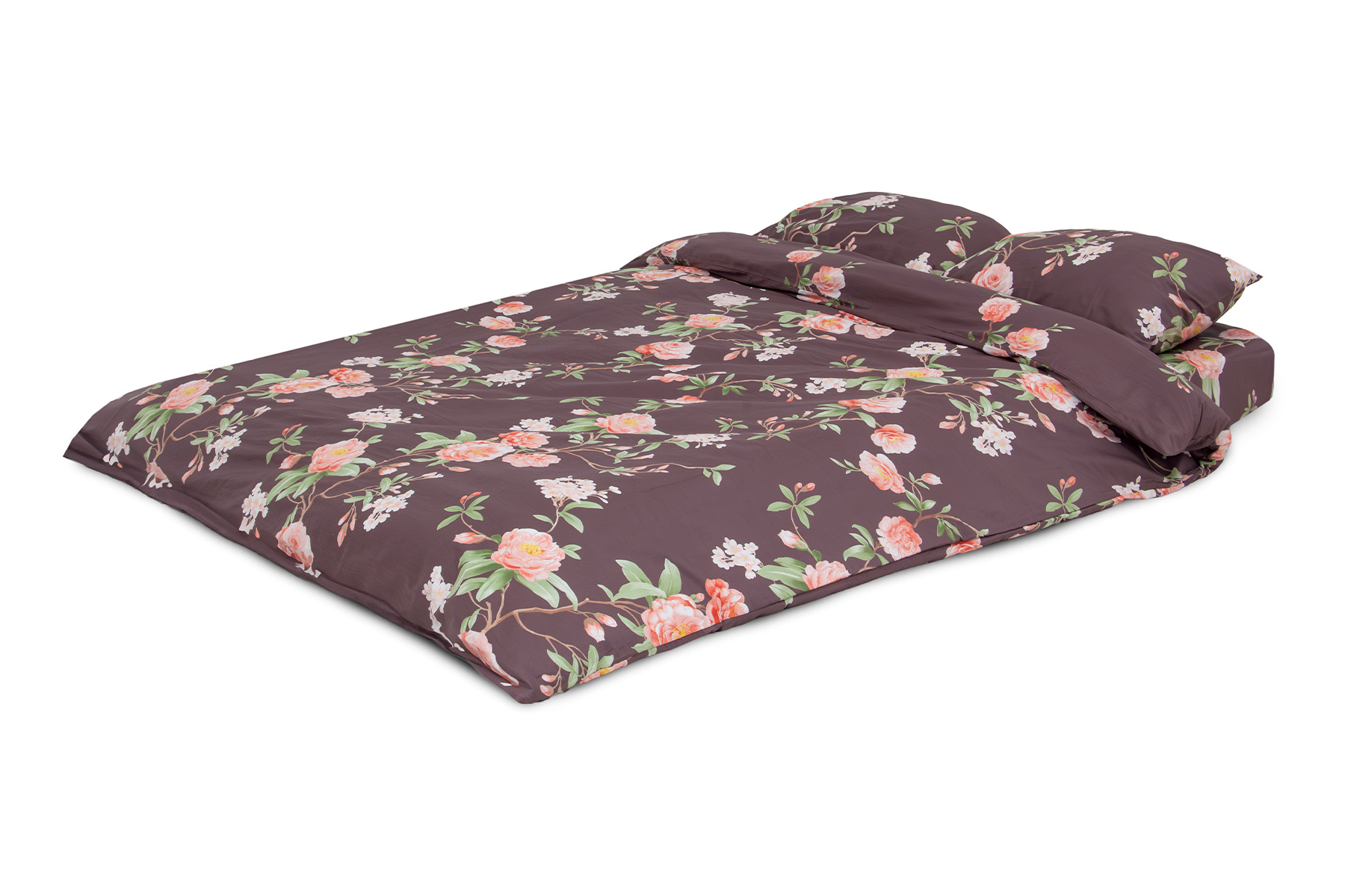 Описание Комплект постільної білизни Венера-2 (двоспальний, сатин, наволочки: 50х70 см 2 шт, квіти, коричневий) IMI
