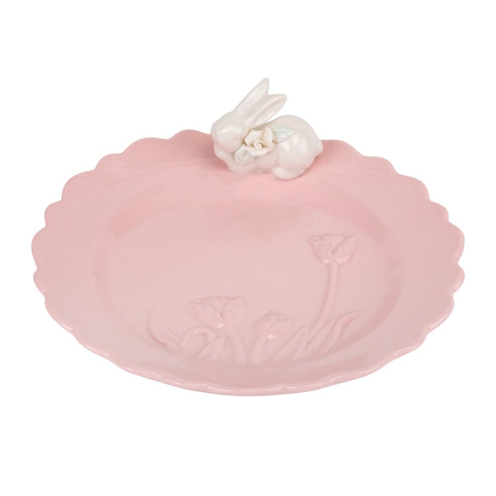 Эта изящная керамическая тарелка с белым кроликом станет изысканным дополнением пасхального стола.