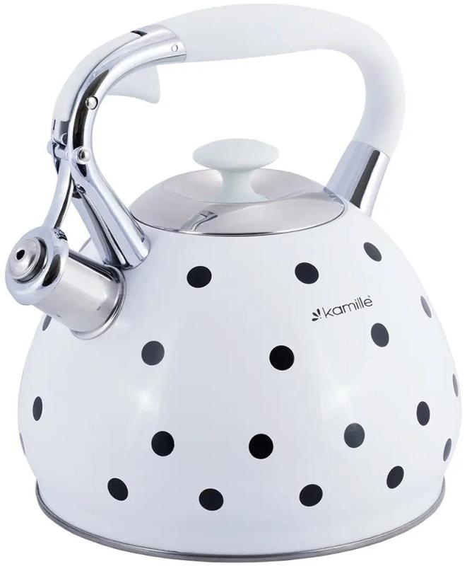 Чайник для плиты из нержавеющей стали 3л white with black polka dots Kamille DP262110