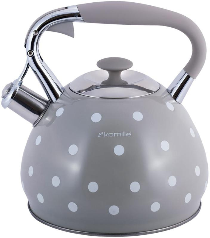 Чайник для плиты из нержавеющей стали 3л Grey with white polka dots Kamille DP262109