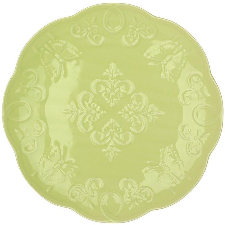 Описание Набор круглых тарелок BonaDi Ceramic Green Butterfly 21 см Салатовый 6 шт DP231001
