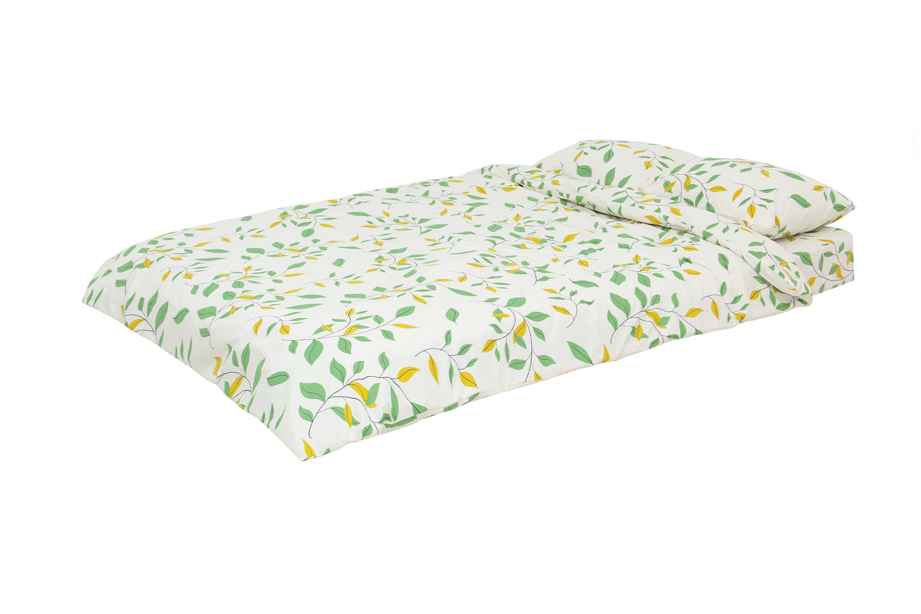 Описание Комплект постільної білизни Деметра-32 (двоспальний, бязь gold lux, наволочки: 50х70 см 2 шт, білий, зелені листочки) IMI