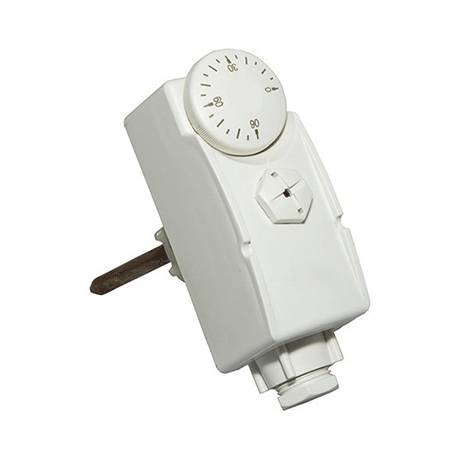 Терморегулятор для водонагревателей с капиллярной трубкой. На конце капиллярной трубки подсоединяется термостат, который посредством погружной трубки непосредственно оказывается в трубопроводе, осуществляет измерения температуры жидкости в трубопроводе, а также управляет температурой до заданных параметров путем размыкания или замыкания контактов реле. Благодаря погружению сенсора прибора сразу в жидкость минимизируется возможность косвенного воздействия на его показатели, соответственно, он быстрее реагирует на изменения температуры.
