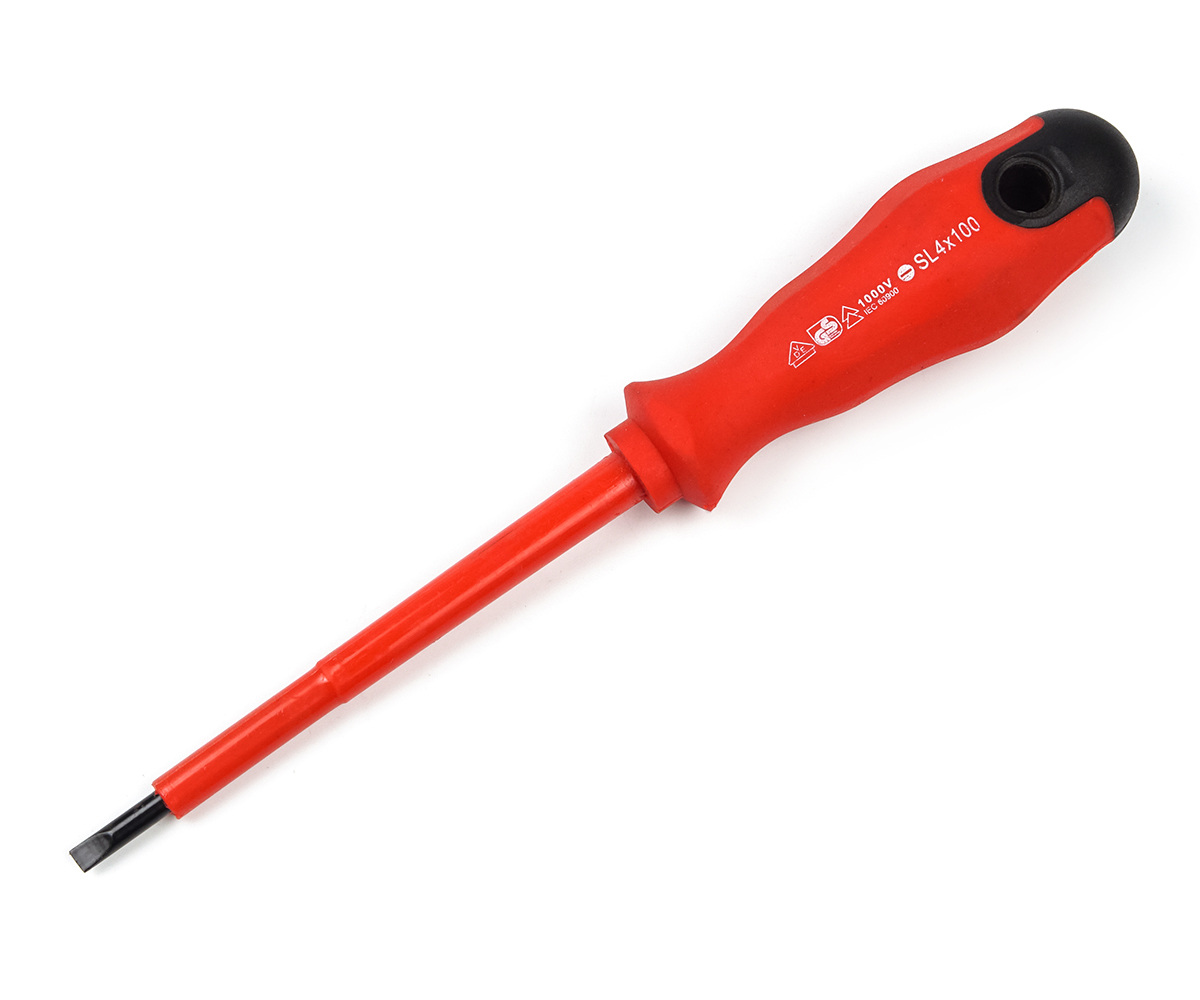 Характеристики товара Отвертка диэлектрическая шлицевая плоская SL4x100mm, CrV Polax (51-032)