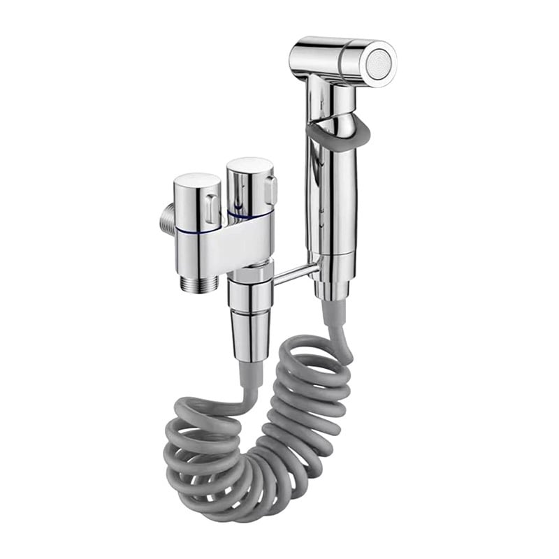 Двойной сантехнический кран с гигиеническим душем для унитаза Britc Chrome