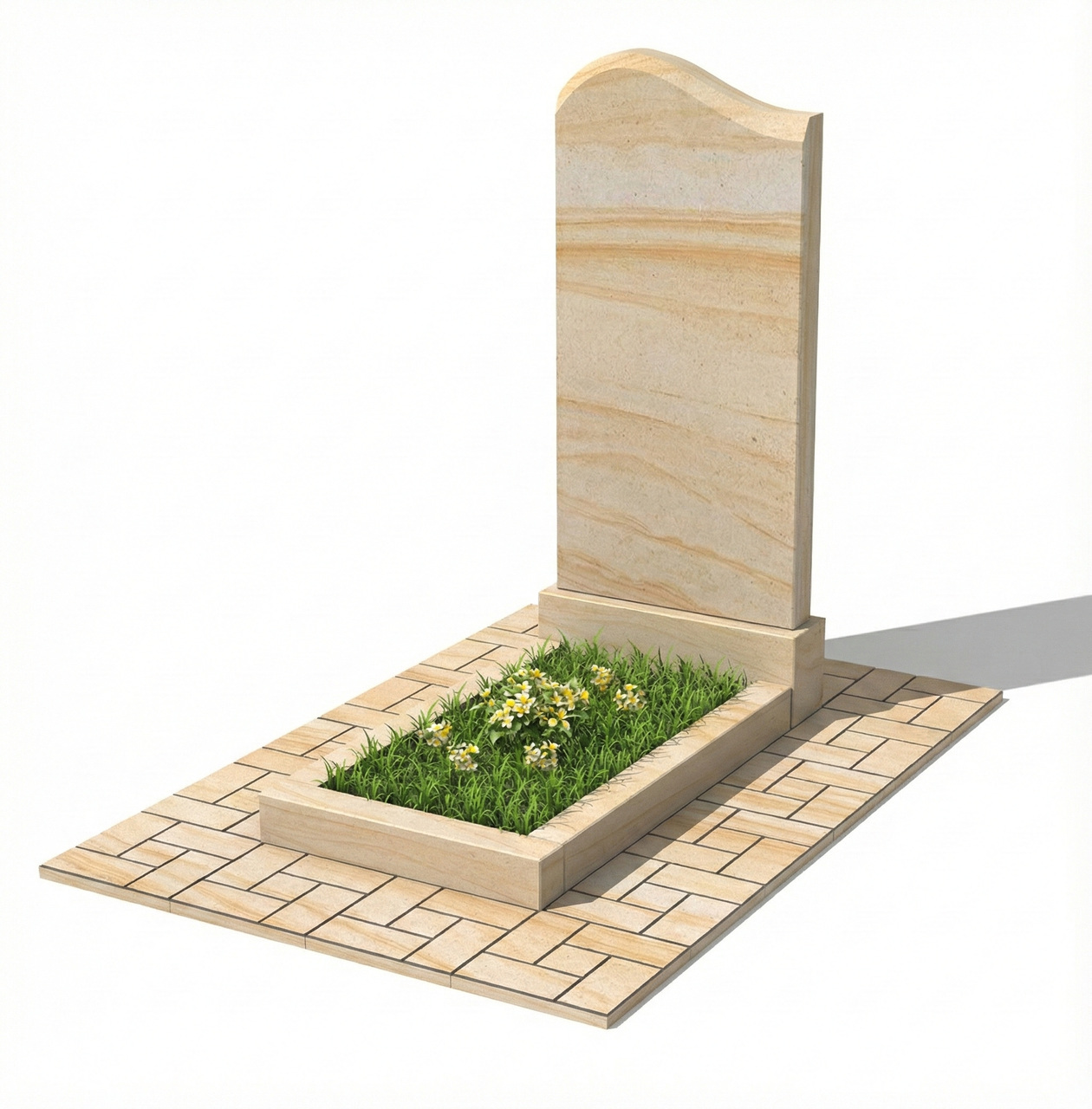 Класичний одинарний пам'ятник з природнього каменю піщанику. Прямокутний. В комплект входить: стела 100*50*6, Тумба 60*20*15, квітник 100*60*8.