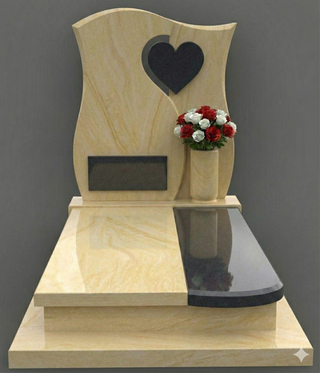 Елітний пам'ятник у європейському стилі. Поєднання жовтого піщаника та чорного граніту. Виготовляюмо за вашими розмірами. Розроблення дизайнів за вашими запитами. Використовуємо білий, жовтий камінь, чорний, червоний, сірий граніт.