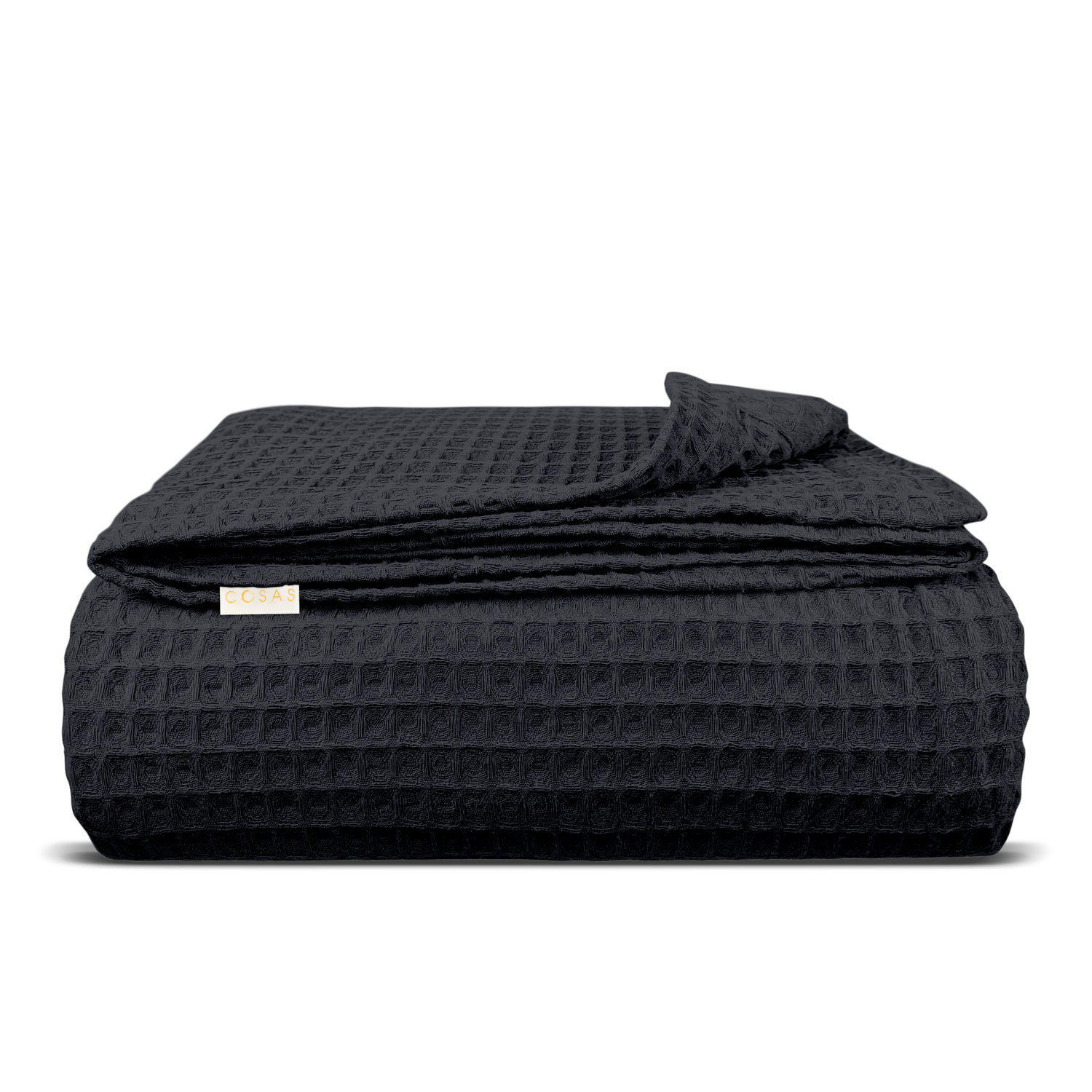 Описание Плед покрывало вафельное COSAS Black Greek Waffle 75x95 см Черный