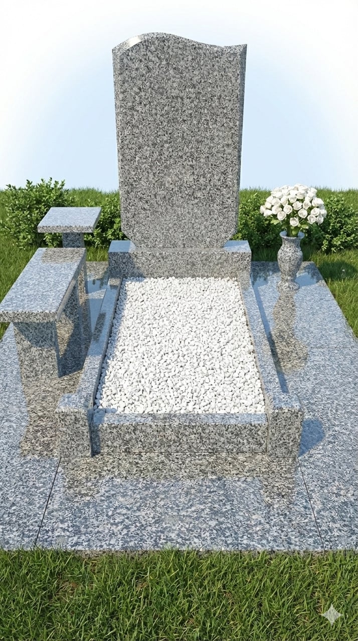 Фігурний пам'ятник із покостового граніту з відстібкою. Є варіанти з надгробною плитою й дівчинкою та столиком.