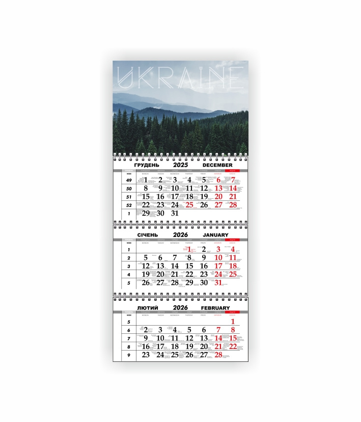 Квартальный настенный календарь Vivay 2026 Украина 30x65 см Разноцветный (hub_8o68be)
