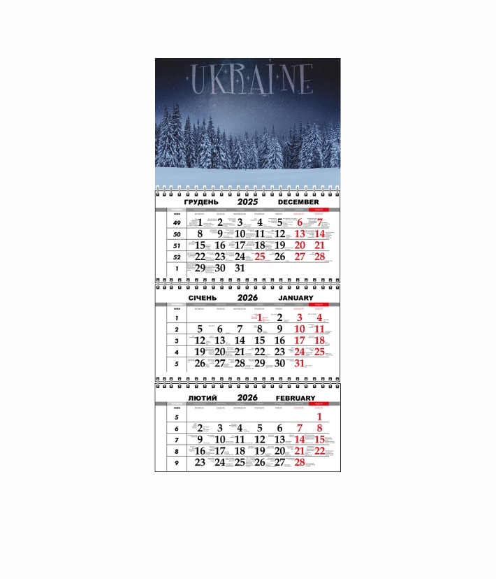Квартальный настенный календарь Vivay 2026 Украина 30x65 см Разноцветный (hub_lum6x9)