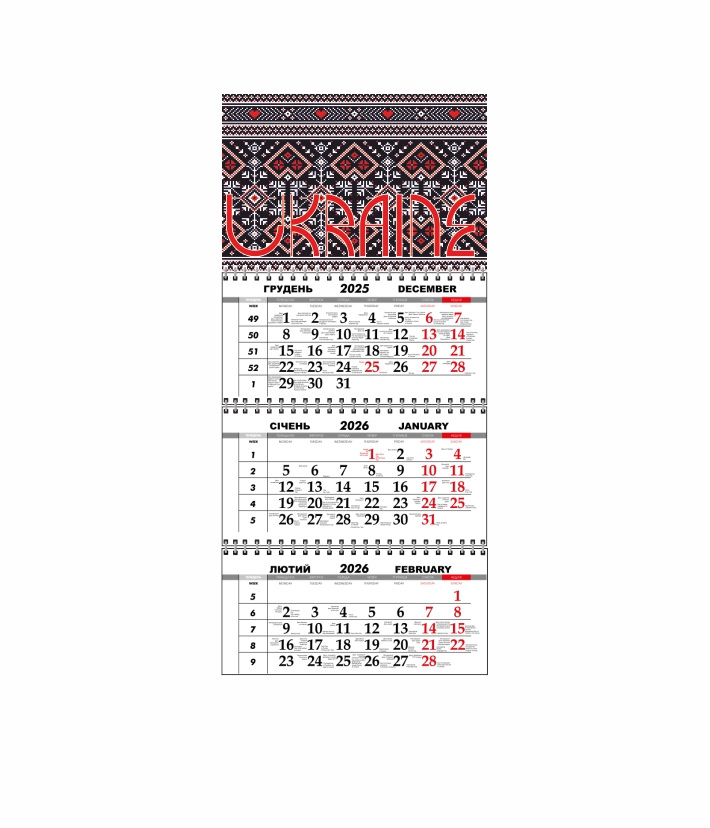 Квартальный настенный календарь Vivay 2026 Украина 30x65 см Разноцветный (hub_8o68be)