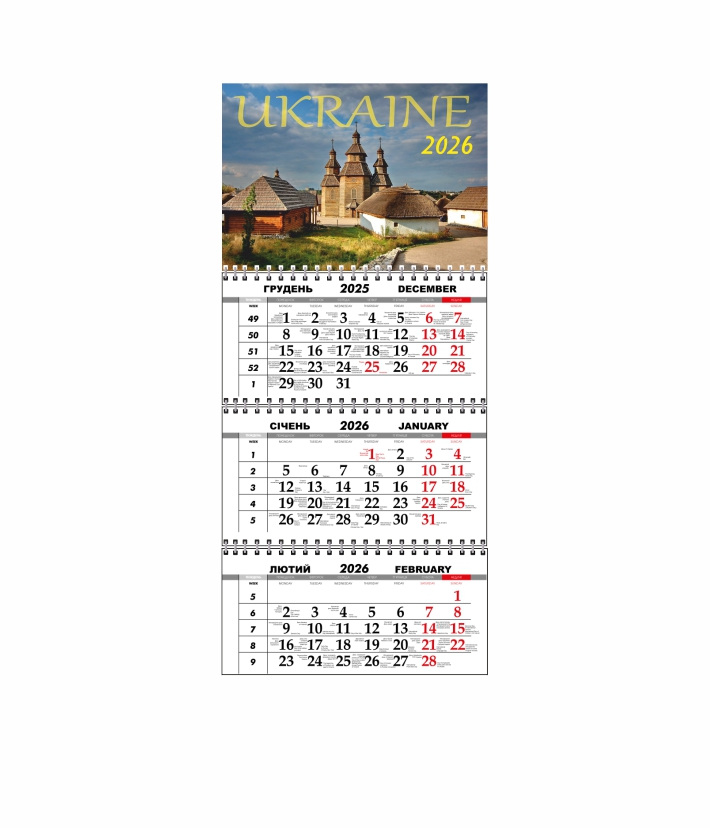 Квартальный настенный календарь Vivay 2026 Украина 30x65 см Разноцветный (hub_r8462f)