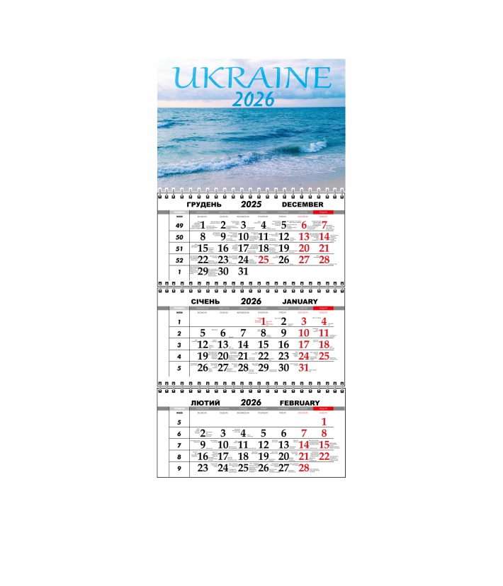 Квартальный настенный календарь Vivay 2026 Украина 30x65 см Разноцветный (hub_r8462f)
