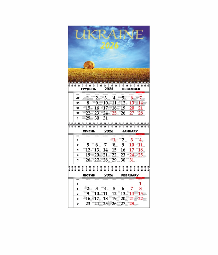 Квартальный настенный календарь Vivay 2026 Украина 30x65 см Разноцветный (hub_r8462f)