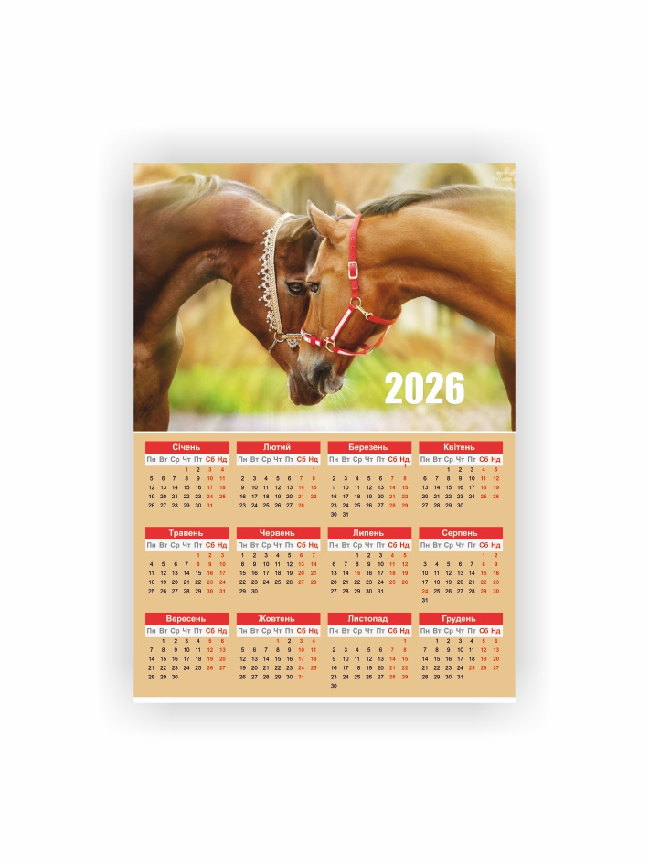 Календарь-плакат Vivay 2026 Год лошади А3 Разноцветный (hub_c18xrj)