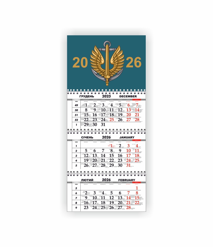 Квартальный настенный календарь Vivay 2026 Украина 30x65 см Разноцветный (hub_y4hdhj)