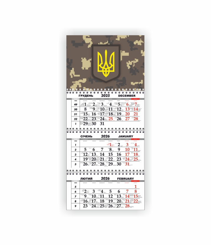 Квартальный настенный календарь Vivay 2026 Украина 30x65 см Разноцветный (hub_y4hdhj)