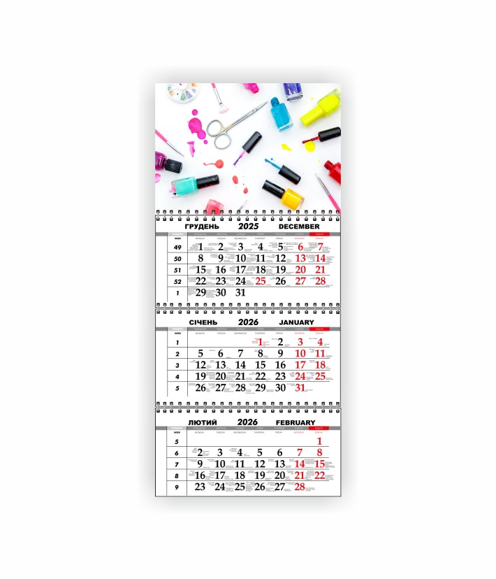 Квартальный настенный календарь Vivay 2026 Салон красоты 30x65 см Разноцветный (hub_tw5obg)