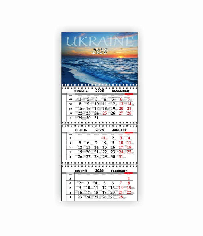 Квартальный настенный календарь Vivay 2026 Украина 30x65 см Разноцветный (hub_lum6x9)