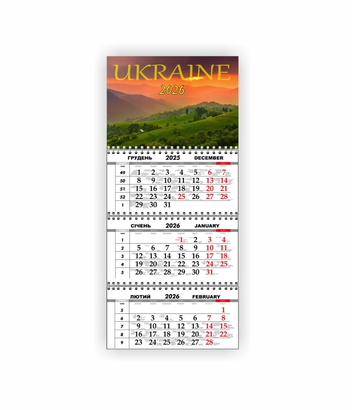 Квартальный настенный календарь Vivay 2026 Украина 30x65 см Разноцветный (hub_y4hdhj)