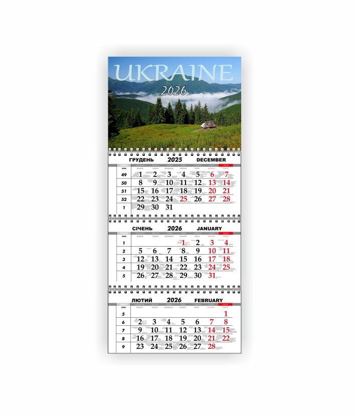 Квартальный настенный календарь Vivay 2026 Украина 30x65 см Разноцветный (hub_8o68be)